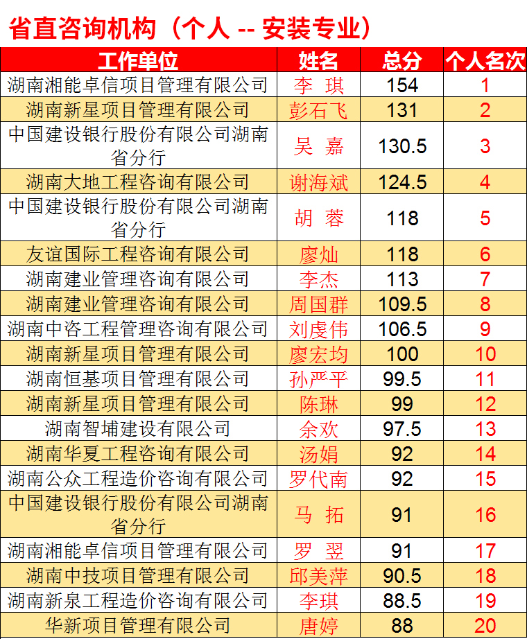 根據(jù)省直機(jī)關(guān)工委、省住房和城鄉(xiāng)建設(shè)廳、省總工會(huì)《關(guān)于舉辦湖南省直首屆“超英杯”工程造價(jià)職業(yè)技能競賽的通知》(湘直通[2016]22號(hào))的有關(guān)精神,于2016年10月24日上午在長沙舉行了預(yù)賽,10月28日將參賽選手成績上網(wǎng)供查詢,截止10月31日16:00時(shí),經(jīng)各參賽隊(duì)確認(rèn),成績無誤。現(xiàn)將進(jìn)入決賽的單位和選手名單予以公布,公示時(shí)間為2016年11月1日至11月3日。如對公布名單有異議,申請人可在公示期間以書面形式提供陳述材料,逾期不予受理。個(gè)人反映情況要簽署真實(shí)姓名,并需留下真實(shí)的聯(lián)系電話、地址、郵編。聯(lián)系電話0731-84165845,郵箱:1747003415@qq.com。