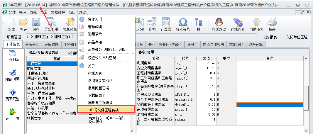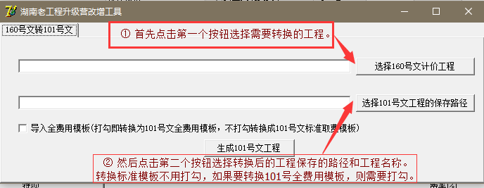 湖南2016計價程序已增加了最新101模板,并做了相應(yīng)的轉(zhuǎn)換工具,可將160號文的工程一鍵轉(zhuǎn)換,分“轉(zhuǎn)換”與“刷新”兩部分,具體操作如下: