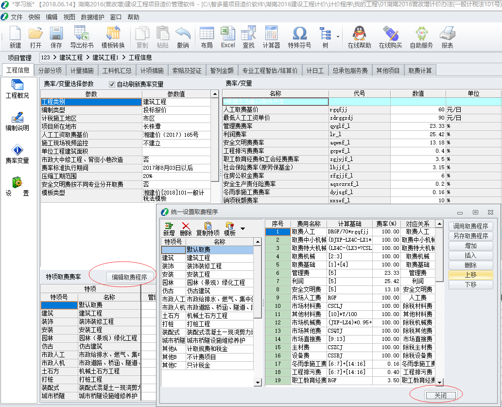1. 在【工程信息】界面的“費率變量”窗口, 點“編輯取費程序” , 打開后關(guān)閉, 然后在彈出的對話框中根據(jù)提示點“是”,即可刷新取費;