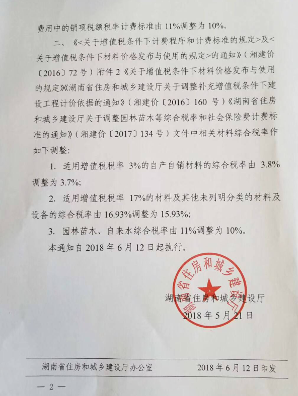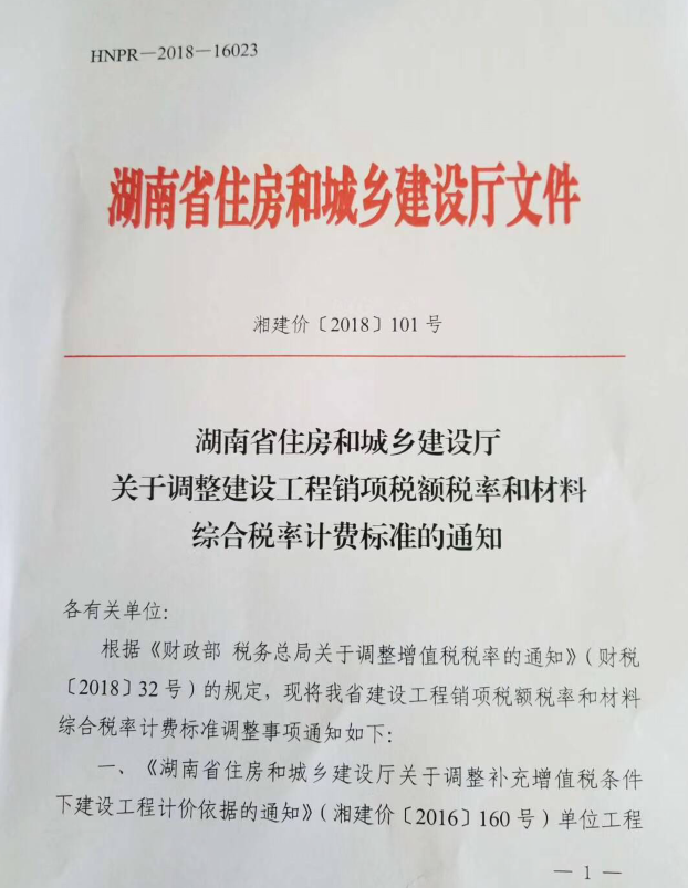 關(guān)于湘建價〔2018101號調(diào)整建設(shè)工程銷項稅額稅率和材料,綜合稅率計費標準調(diào)整如下: