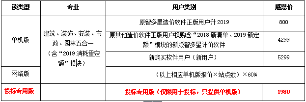 1.同一單位一次性購買智多星軟件產(chǎn)品30000元(含)以上,且不參加每30000元可免費(fèi)贈送智多星新版計(jì)價(jià)軟件一套。